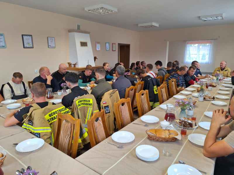 Na zakończenie strażakom podziękowano za zaangażowanie i udział, a panie z Koła Gospodyń Wiejskich w Chlewiskach przygotowały dla uczestników poczęstunek.