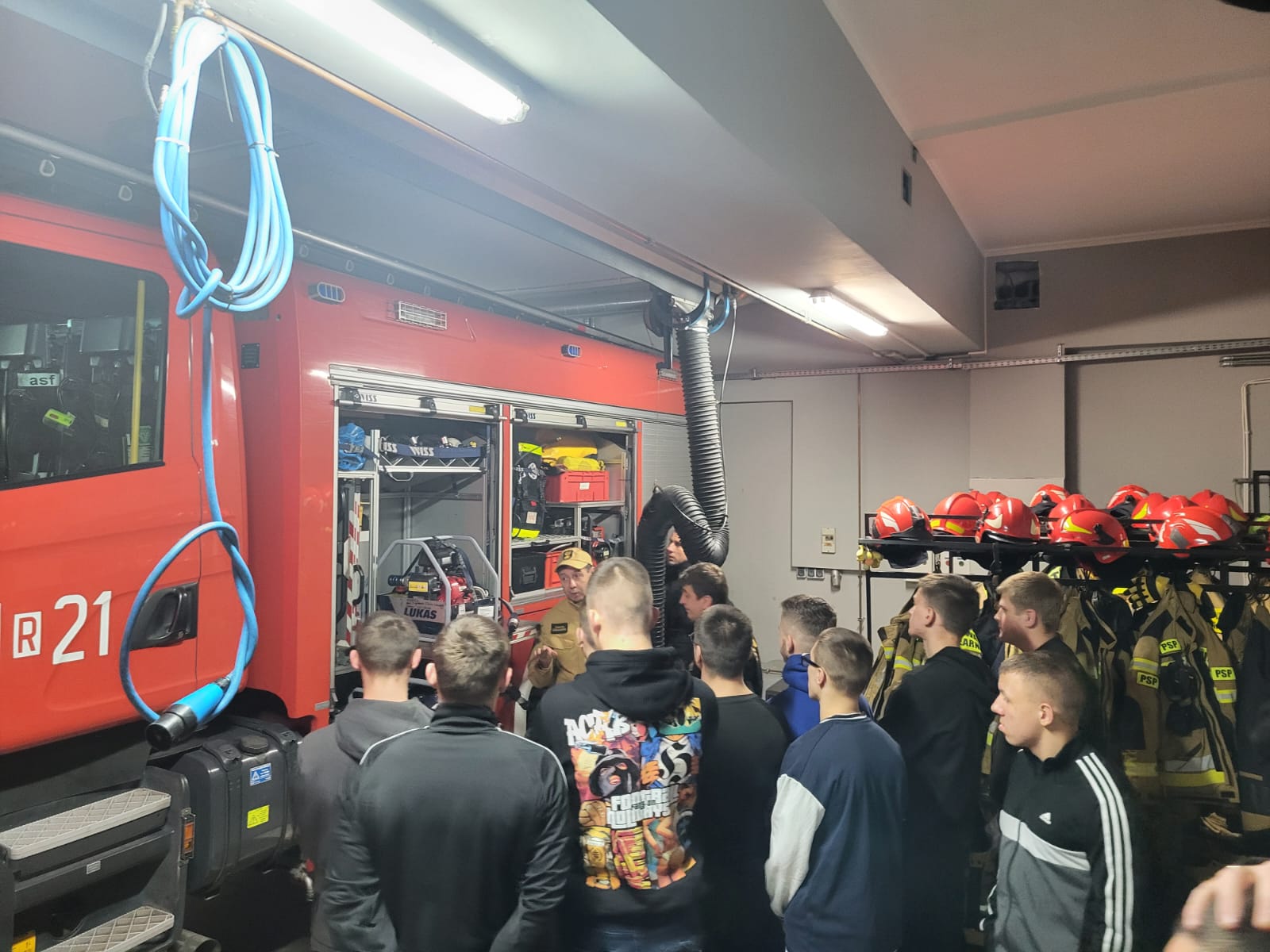 Część merytoryczną poprowadził st. kpt. Marek Chomyszyn, Dowódca Jednostki Ratowniczo-Gaśniczej. Prelekcja dotyczyła m.in. funkcjonowania służb, zasad bezpieczeństwa oraz ochrony przeciwpożarowej. Następnie uczestnicy mogli zobaczyć, jak wygląda codzienna praca strażaków, poznać wyposażenie JRG oraz dowiedzieć się, jak wykorzystywany jest sprzęt ratowniczy.
