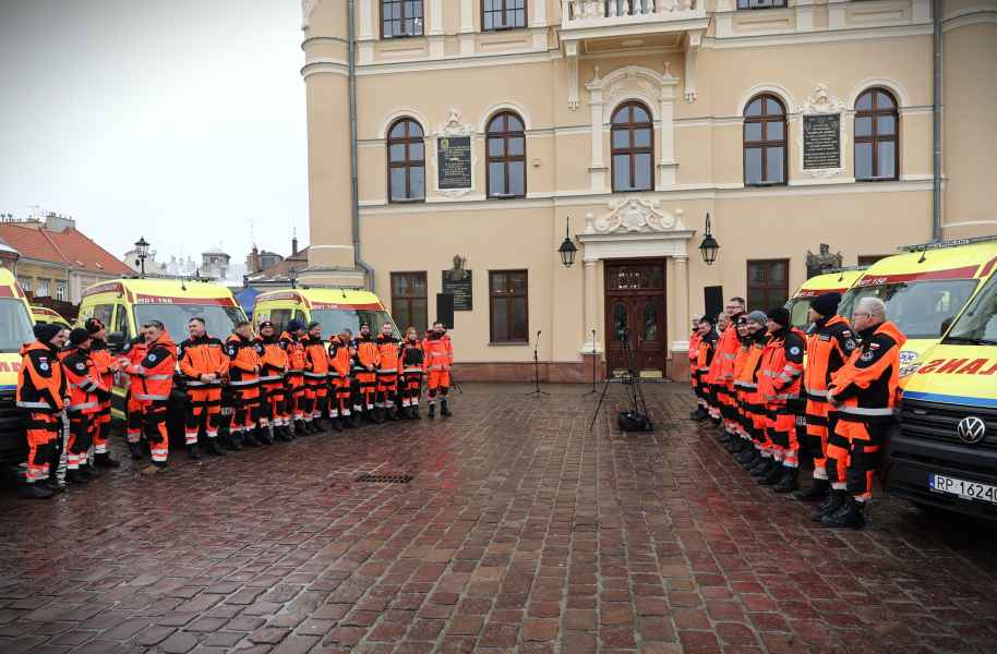 Wojewódzka Stacja Pogotowia Ratunkowego w Przemyślu powiększyła swoją flotę o sześć nowoczesnych ambulansów. To inwestycja, która realnie przekłada się na szybkość i jakość udzielanej pomocy. Jeden z nowych pojazdów trafił do stacji w Lubaczowie. Oficjalna prezentacja zakupionych karetek odbyła się w piątek, 6 lutego, na rynku w Jarosławiu.