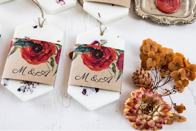 Na koniec warto również pamiętać, aby wspomniane zawieszki sojowe elegancko zapakować. W tym charakterze bardzo dobrze sprawdzi się zdobniczy papier, na którym można wykonać efektowny i ornamentalny nadruk z dekoracyjnym, szeryfowym krojem czcionki. Warto na tym papierze zamieścić datę ślubu oraz inicjały lub imiona Nowożeńców. Trzeba również pomyśleć o mocowaniu prezentu, np. za pomocą wstążki lub sznurka, który nada rustykalnego charakteru. Ważne również, aby całość nawiązywała do motywu przewodniego Wesela i była z nim w 100% zgodna.