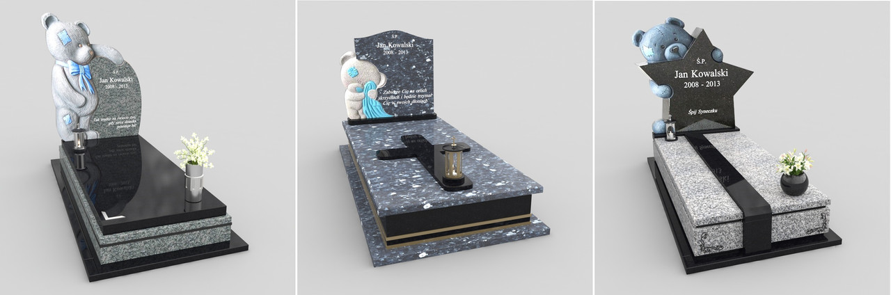 Tworzymy takie nagrobki z myślą o najmłodszych, te pomniki uwzględniają dziecięce fascynacje, zabawy i marzenia. Często ozdobione postaciami z bajek, zabawkami i delikatnymi rzeźbami, nagrobki te oddają niewinność dziecięcych dusz i pozostawiają miejsce, które emanuje ciepłem i radością.