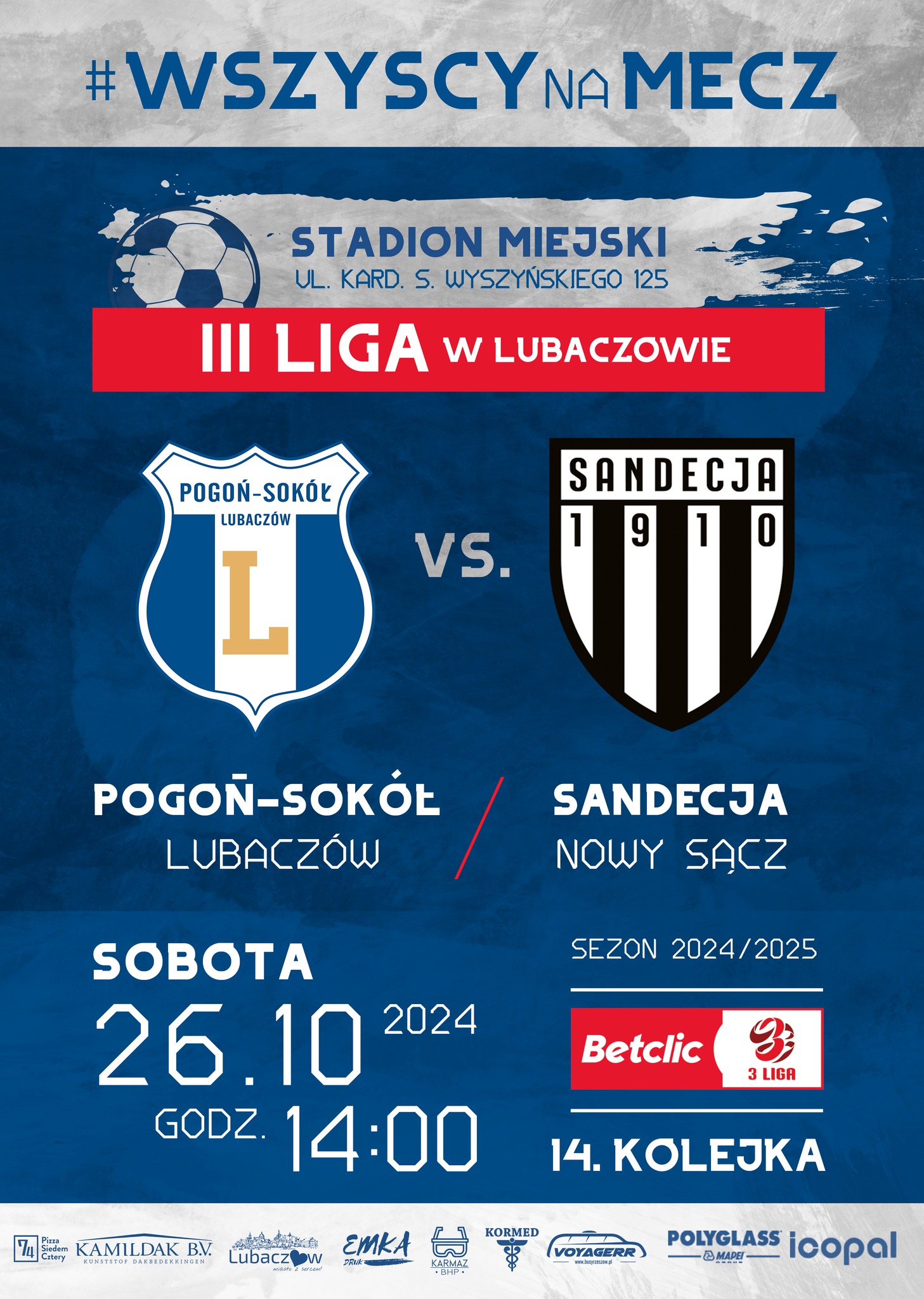 W sobotę 26 października o godzinie 14:00 na stadionie w Lubaczowie Pogoń-Sokół zmierzy się z liderem Betclic 3. ligi, Sandecją Nowy Sącz. Drużyna z Lubaczowa, walcząca o utrzymanie, stanie przed trudnym zadaniem, mierząc się z zespołem, który dominuje w rozgrywkach. Mimo różnicy w tabeli, podopieczni trenera Konrada Wójtowicza będą liczyć na niespodziankę i cenne punkty.