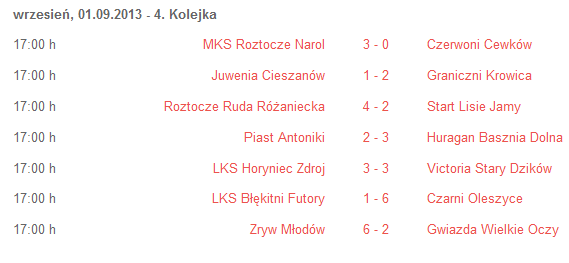 Wyniki 4 kolejki A klasy: