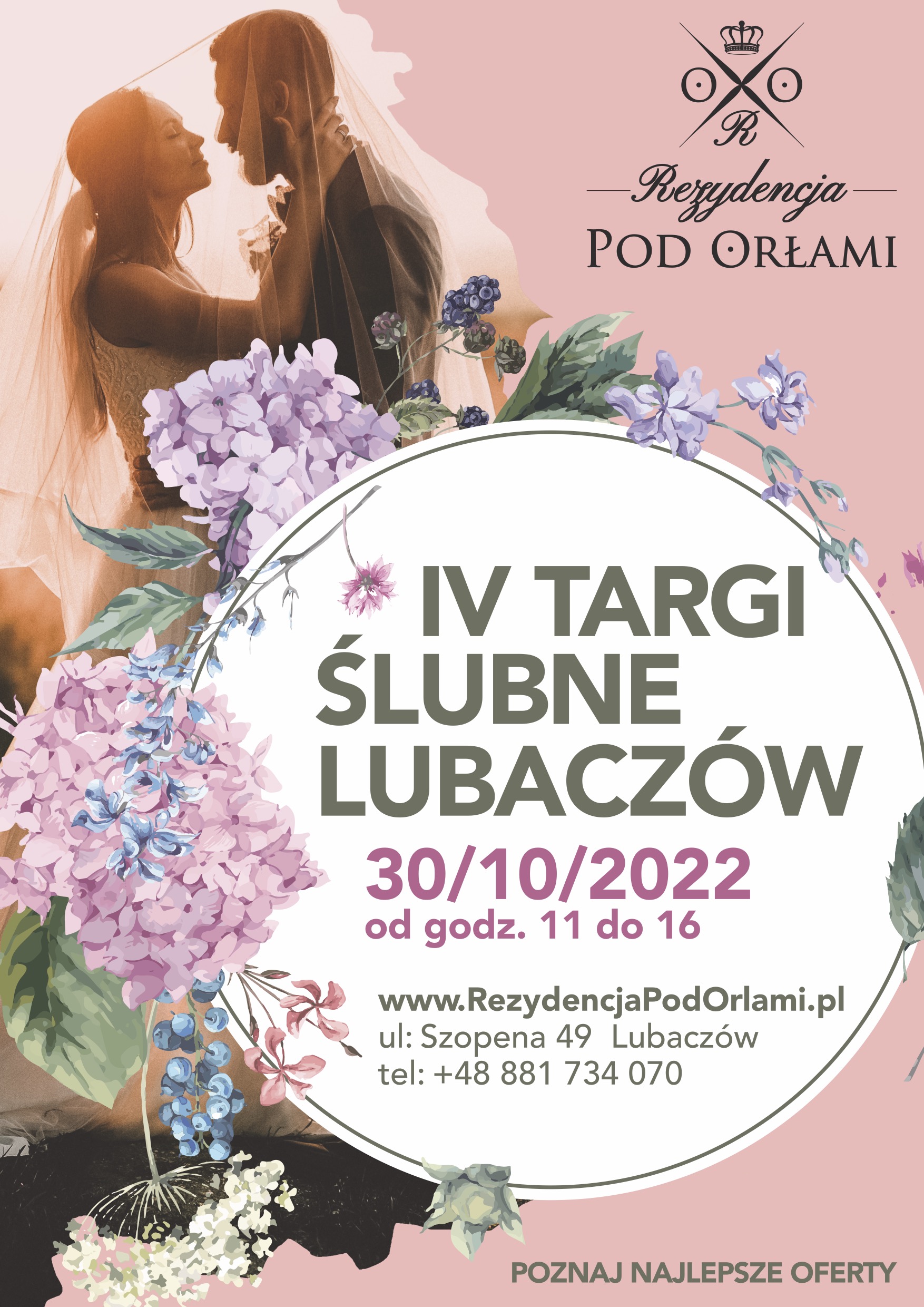 Już w tę niedzielę (30.10) od godziny 11:00 do 16:00 odbędą się w Lubaczowie w Rezydencji Pod Orłami - IV Targi Ślubne. Targi przeznaczone są dla wszystkich, którzy planują zaręczyny, są zaręczeni, planują wesele lub będą gośćmi weselnymi.