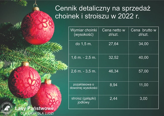 W Nadleśnictwie Lubaczów choinki są sprzedawane do 21 grudnia w siedzibach wszystkich leśnictwa Czerwinki, Dziewięcierz, Werchrata, Wielki Las, Załuże, Opaka i Wielkie Oczy. Natomiast w dniach od 19 do 21 grudnia odbędzie się sprzedaż detaliczna drzew choinkowych na placu Nadleśnictwa Lubaczów.