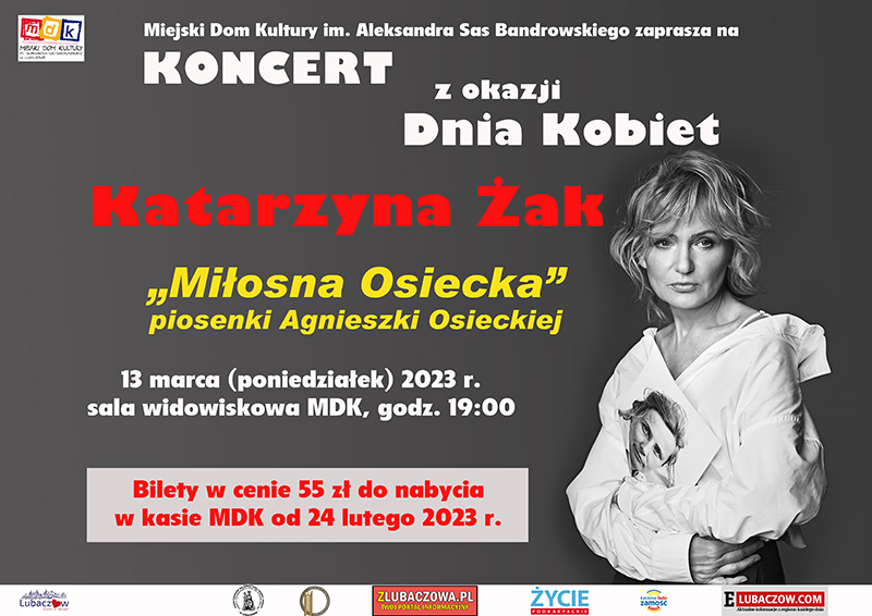 13 marca w Miejskim Domu Kultury w Lubaczowie usłyszymy najpiękniejsze miłosne teksty Agnieszki Osieckiej w wykonaniu polskiej aktorki i wokalistki Katarzyny Żak. Rusza sprzedaż biletów.