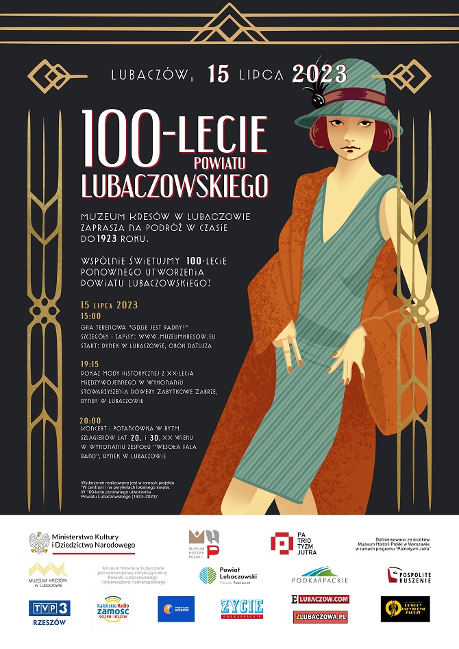 Muzeum Kresów w Lubaczowie przygotowuje cykl wydarzeń związanych ze 100-leciem ponownego utworzenia Powiatu Lubaczowskiego. Jubileusz ten wiąże się z datą 1923 r., kiedy do Lubaczowa, z Cieszanowa, dotkliwie zniszczonego przez wojska rosyjskie w trakcie I wojny światowej, przeniesiono siedzibę starosty oraz Rady Powiatu, a nazwę powiatu zmieniono z „cieszanowski” na „lubaczowski”. W ten sposób, po kilkudziesięciu latach Cieszanów utracił swą powiatową stołeczność, a Lubaczów ją uzyskał, kontynuując, po dziś dzień, tradycje, mające swój początek jeszcze w okresie staropolskim. Celem zaplanowanych działań jest przypomnienie, w kreatywny i nowatorski sposób, wydarzeń z lokalnej historii, centrów i peryferii ówczesnego lokalnego świata, mozaiki narodowej, religijnej i kulturowej (Polaków, Żydów, Ukraińców, Niemców), a także najważniejszych postaci tamtego czasu: starostów, burmistrzów, dowódców garnizonu, duchownych, nauczycieli, sklepikarzy, rzemieślników, sędziów, lekarzy czy właścicieli ziemskich.