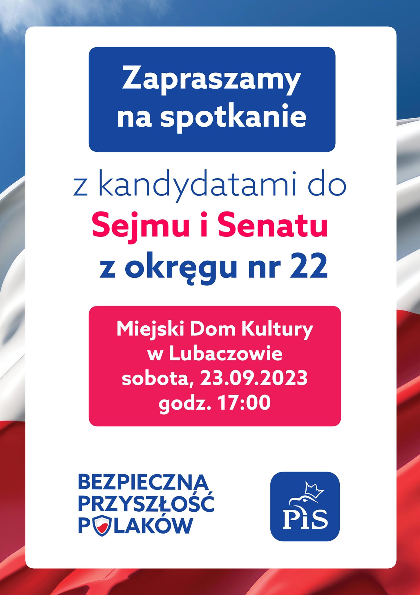 Już w najbliższą sobotę w Miejskim Domu Kultury w Lubaczowie odbędzie się spotkanie z kandydatami Prawa i Sprawiedliwości w okręgu wyborczym nr 22. W wydarzeniu tym udział weźmie m.in. szef Kancelarii Prezesa Rady Ministrów Marek Kuchciński.