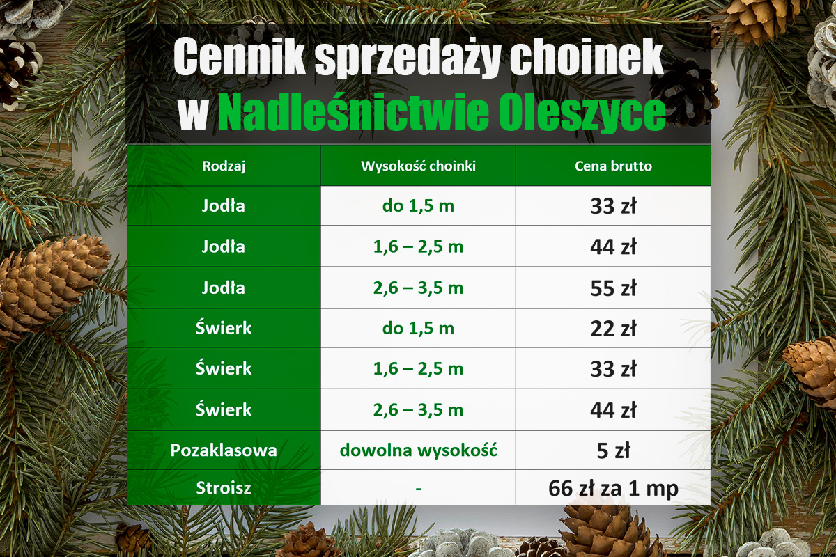 Ile kosztują żywe choinki sprzedawane przez Nadleśnictwa? Poniżej prezentujemy cennik: