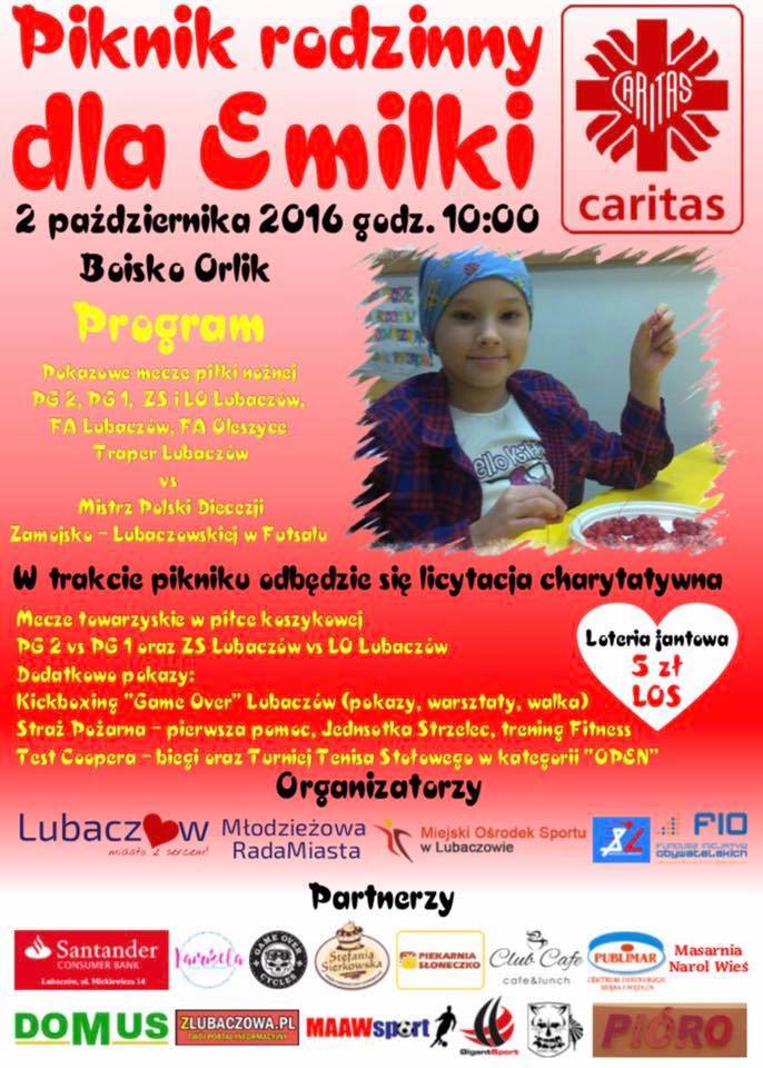 Przypominamy również, że w najbliższą niedzielę w Lubaczowie na Orliku odbędzie się „Piknik Rodzinny dla Emilki. Więcej informacji na plakacie: