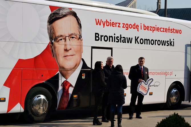 Wybierz zgodę i bezpieczeństwo - z takim hasłem w Lubaczowie stawił się "Bronkobus", autobus promujący Bronisława Komorowskiego, jako kandydata na prezydenta Polski