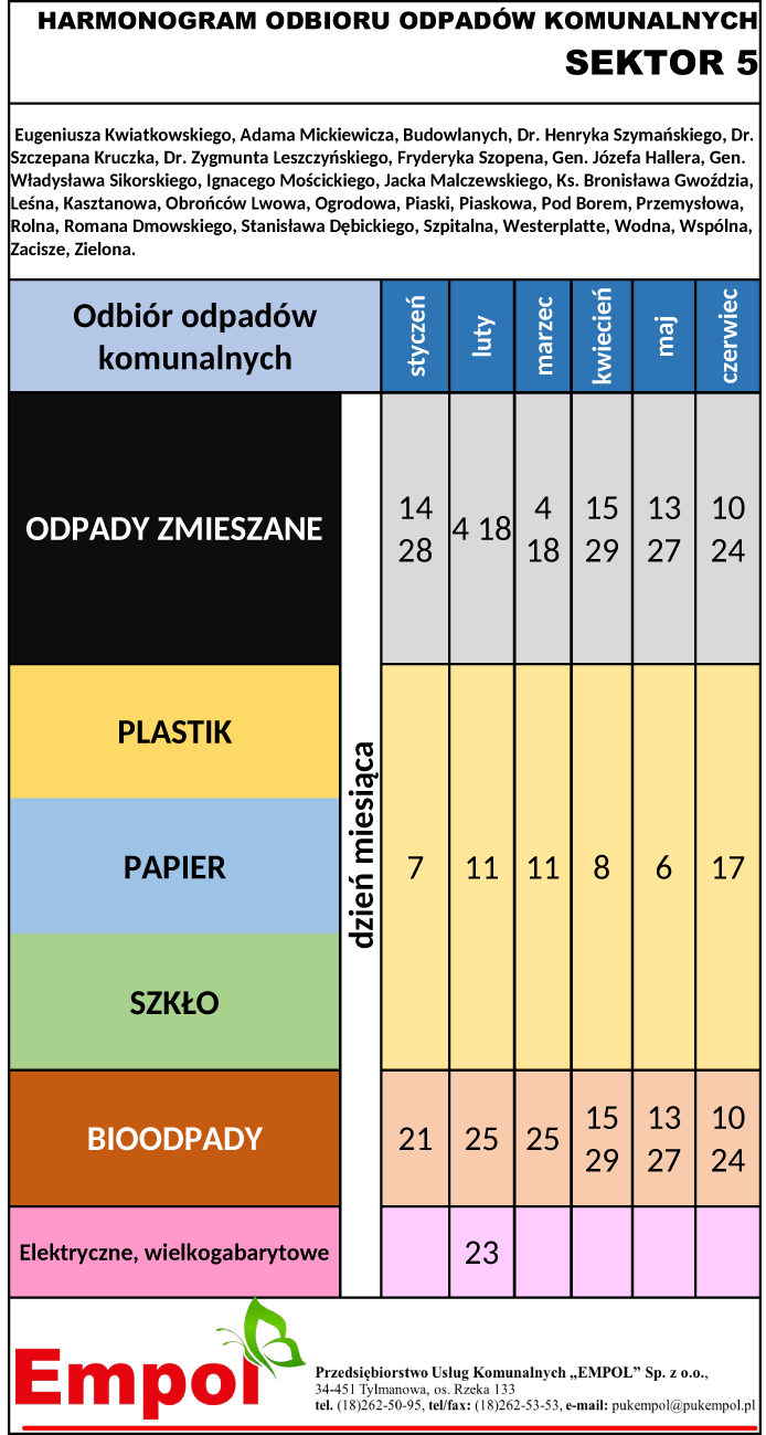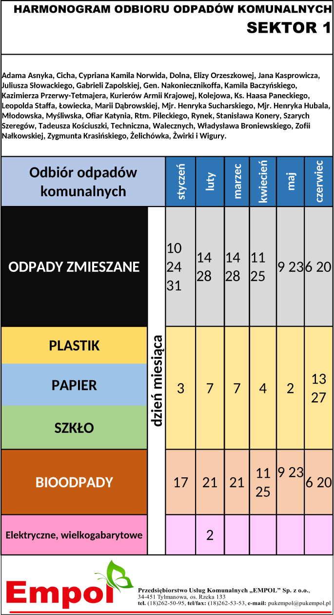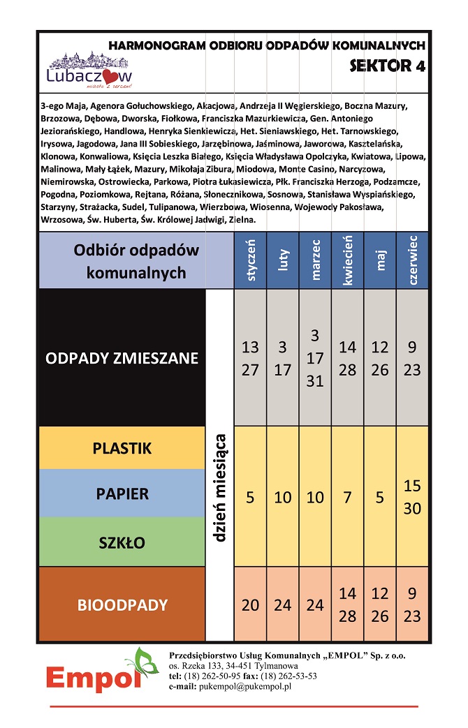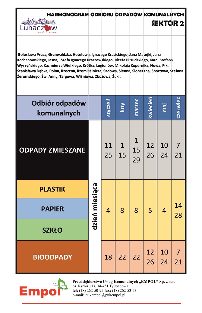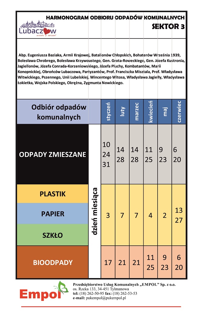 Urząd Miejski w Lubaczowie opublikował harmonogram odbioru odpadów na pierwsze półrocze 2022 roku.