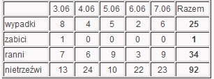 Ze wstępnego podsumowania policyjnych działań wynika, że w czasie długiego czerwcowego weekendu na podkarpackich drogach doszło do 25 wypadków, w których ucierpiały 34 osoby, a jedna osoba zginęła. W ciągu pięciu dni trwania akcji policjanci zatrzymali i udaremnili dalszą jazdę 92 nietrzeźwym kierującym.
