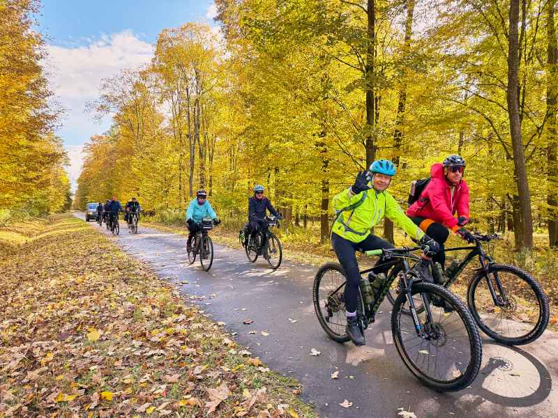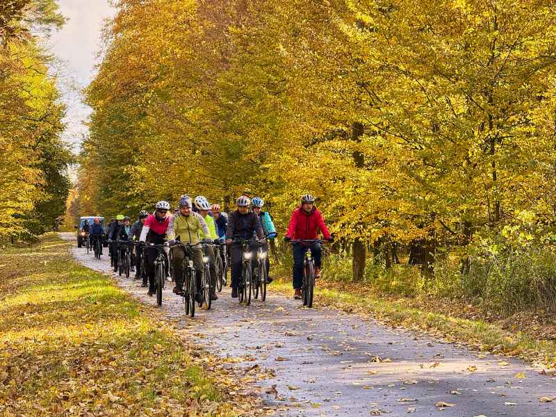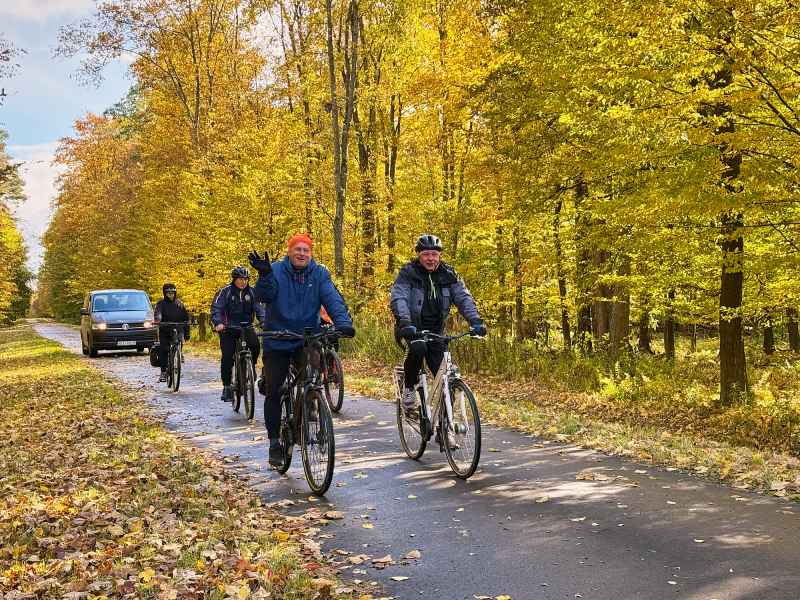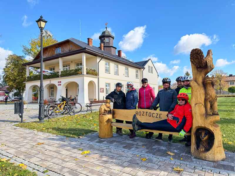 Pierwszy dzień wyprawy rozpoczął się w słonecznej aurze i w otoczeniu złotych barw jesieni. Rowerzyści na rozgrzewkę zdobyli pierwszą wieżę widokową w Horyńcu-Zdroju, a następnie przez klimatyczną aleję lipową w Hucie Kryształowej i zabytkowy cmentarz w Sieniawce dotarli do kolejnej - w Borowej Górze.