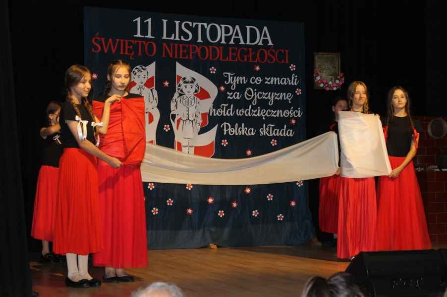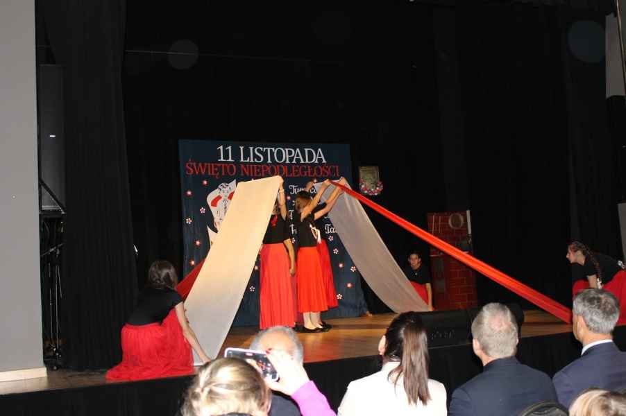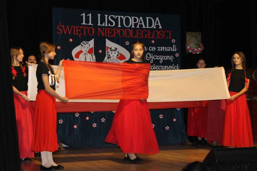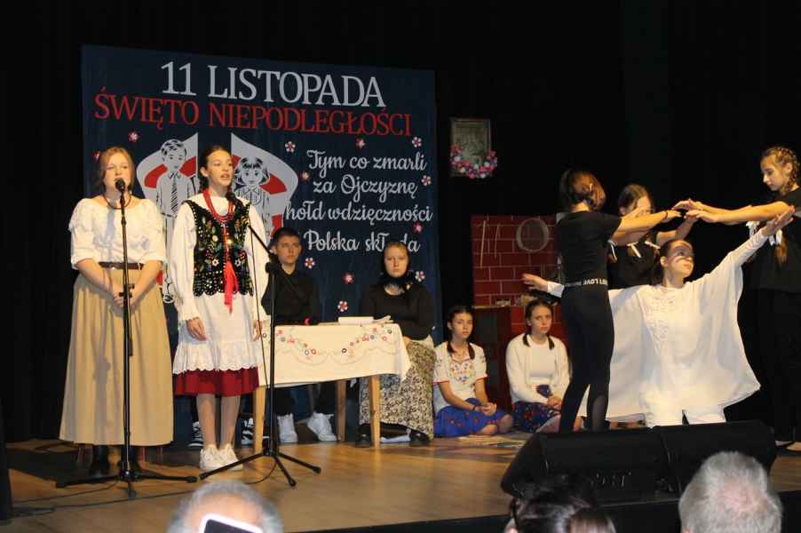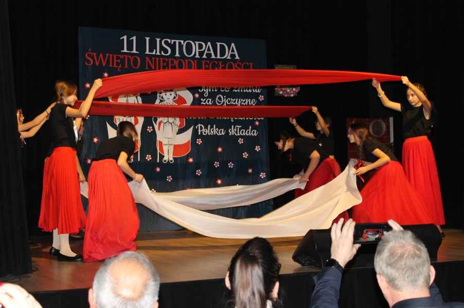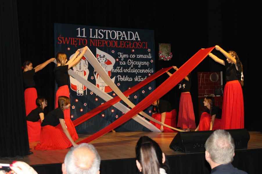 Druga część obchodów odbyła się w sali widowiskowej Gminnego Ośrodka Kultury. Po odśpiewaniu hymnu państwowego i przemówieniu Wójta Gminy Tomasza Jabłońskiego, publiczność obejrzała patriotyczną akademię przygotowaną przez uczniów i nauczycieli ze Szkoły Podstawowej w Cewkowie. Występ młodzieży połączył elementy poezji, muzyki i tańca, tworząc wzruszającą opowieść o miłości do Ojczyzny. Na scenie zaprezentowali się również młodzi wokaliści z grupy działającej przy GOK w Starym Dzikowie.
