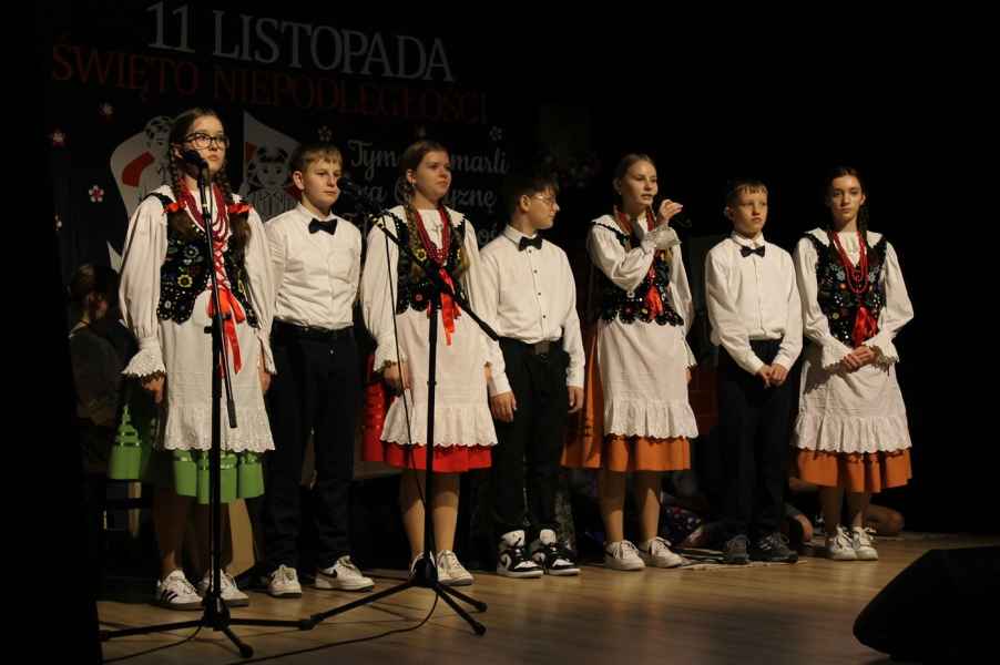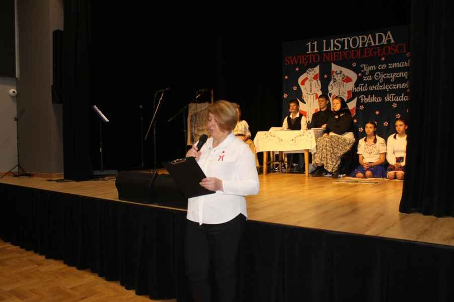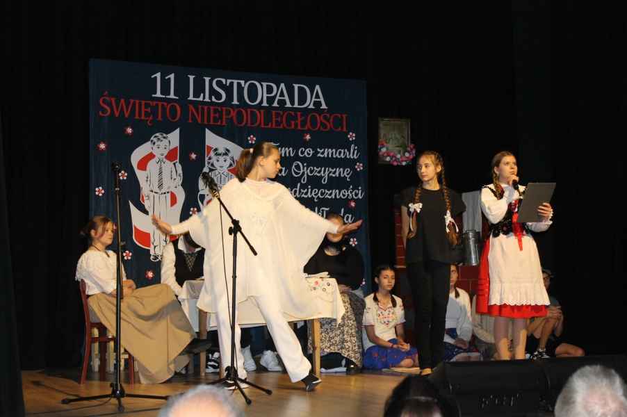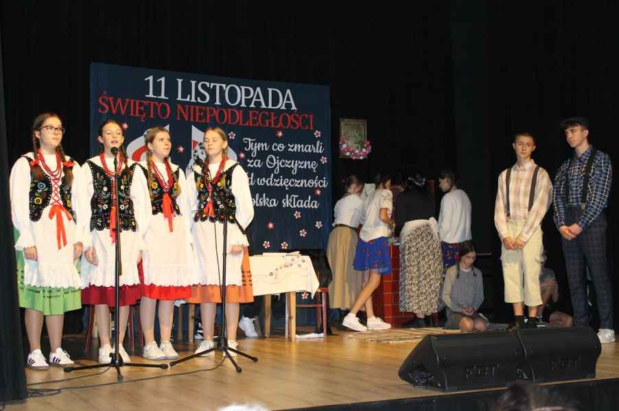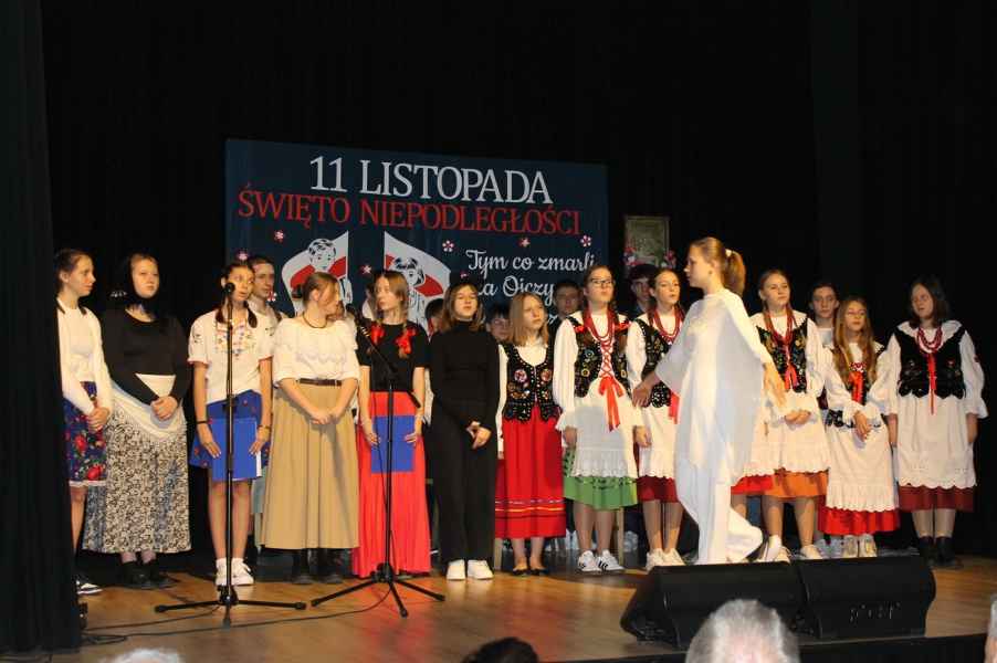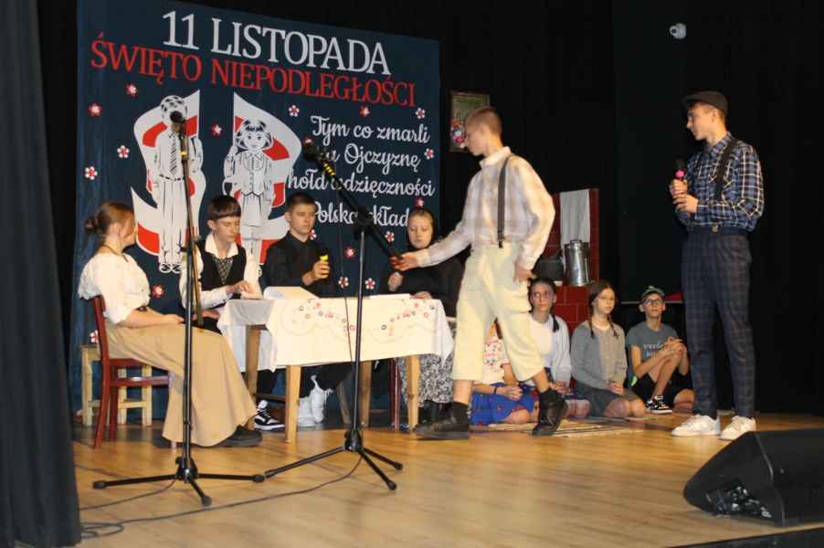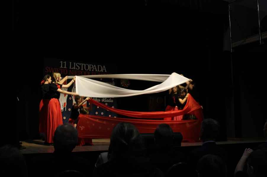 Druga część obchodów odbyła się w sali widowiskowej Gminnego Ośrodka Kultury. Po odśpiewaniu hymnu państwowego i przemówieniu Wójta Gminy Tomasza Jabłońskiego, publiczność obejrzała patriotyczną akademię przygotowaną przez uczniów i nauczycieli ze Szkoły Podstawowej w Cewkowie. Występ młodzieży połączył elementy poezji, muzyki i tańca, tworząc wzruszającą opowieść o miłości do Ojczyzny. Na scenie zaprezentowali się również młodzi wokaliści z grupy działającej przy GOK w Starym Dzikowie.
