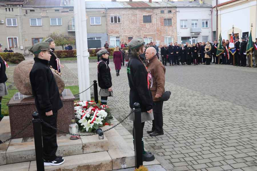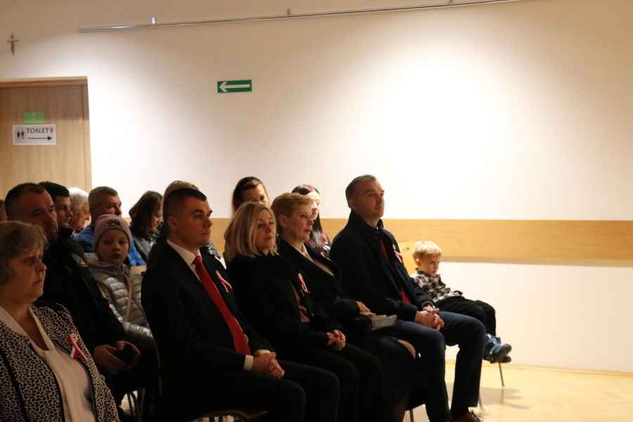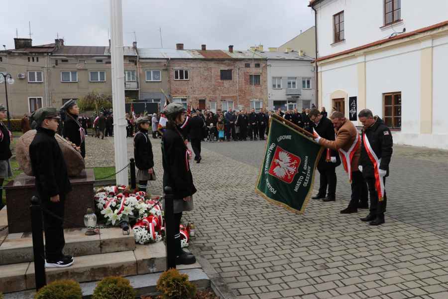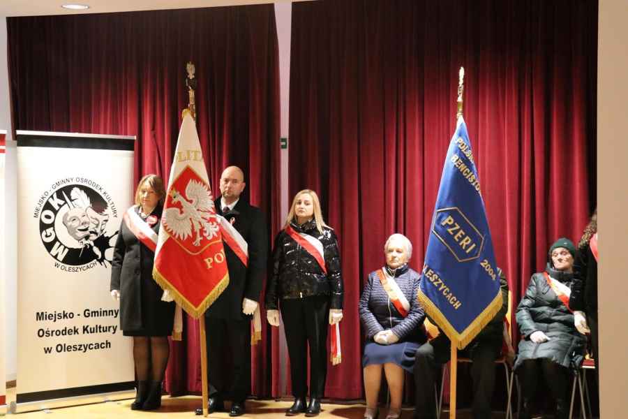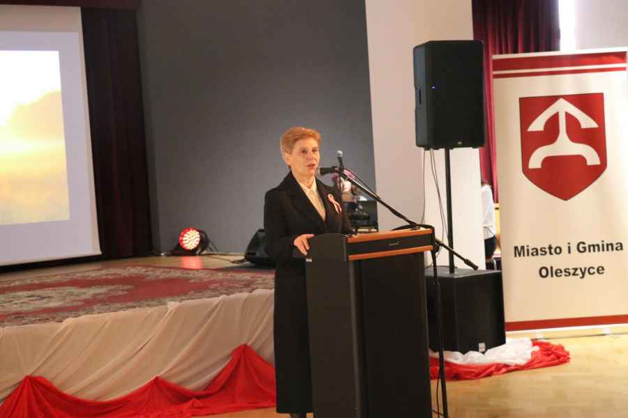 Druga część obchodów odbyła się w sali widowiskowej Miejsko-Gminnego Ośrodka Kultury w Oleszycach. Po wspólnym odśpiewaniu hymnu państwowego głos zabrali: Michał Jabłoński, Burmistrz Miasta i Gminy Oleszyce, Danuta Mulińska, Przewodnicząca Rady Miejskiej, oraz Kazimierz Rymarowicz, Radny Powiatu Lubaczowskiego. W swoich wystąpieniach podkreślali wagę pamięci historycznej, odpowiedzialności za Ojczyznę oraz budowania lokalnej wspólnoty.