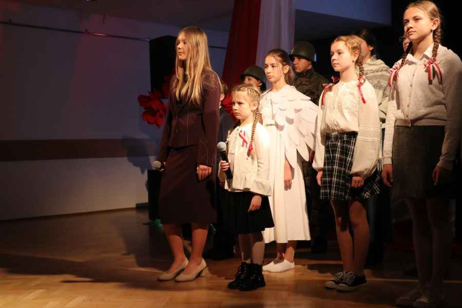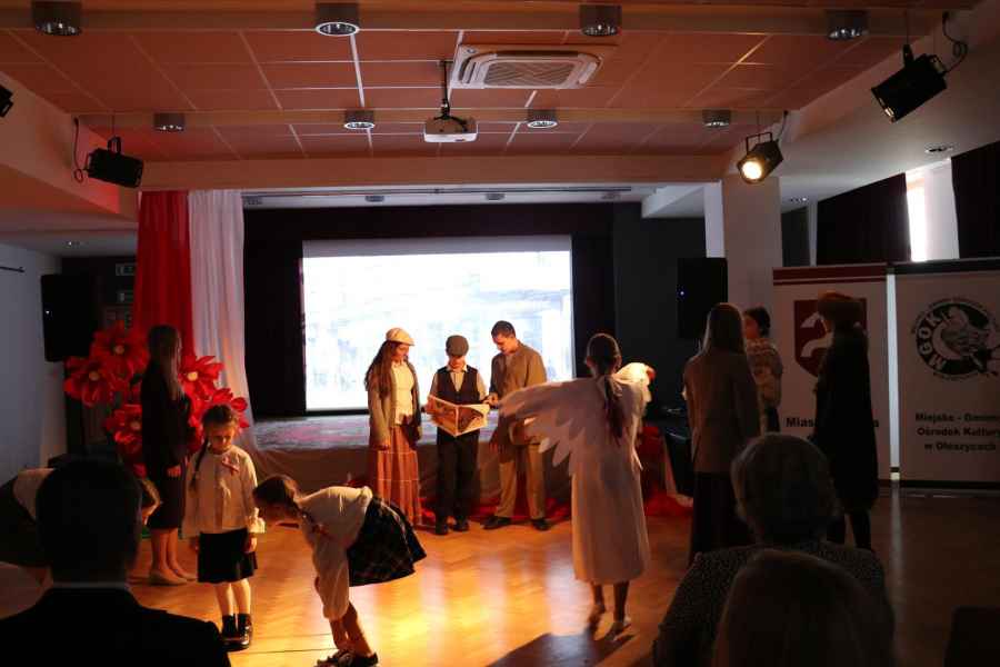 Następnie zaprezentowano część artystyczną przygotowaną przez uczniów Szkoły Podstawowej im. Gen. Józefa Kustronia w Starych Oleszycach. Spektakl „Droga Niepodległej” został bardzo dobrze przyjęty i wprowadził publiczność w klimat wydarzeń prowadzących do odzyskania wolności.