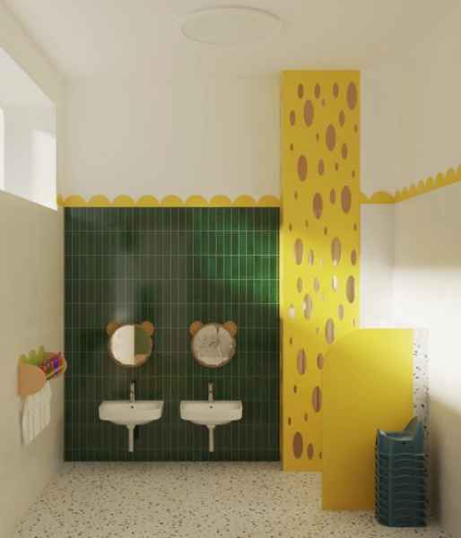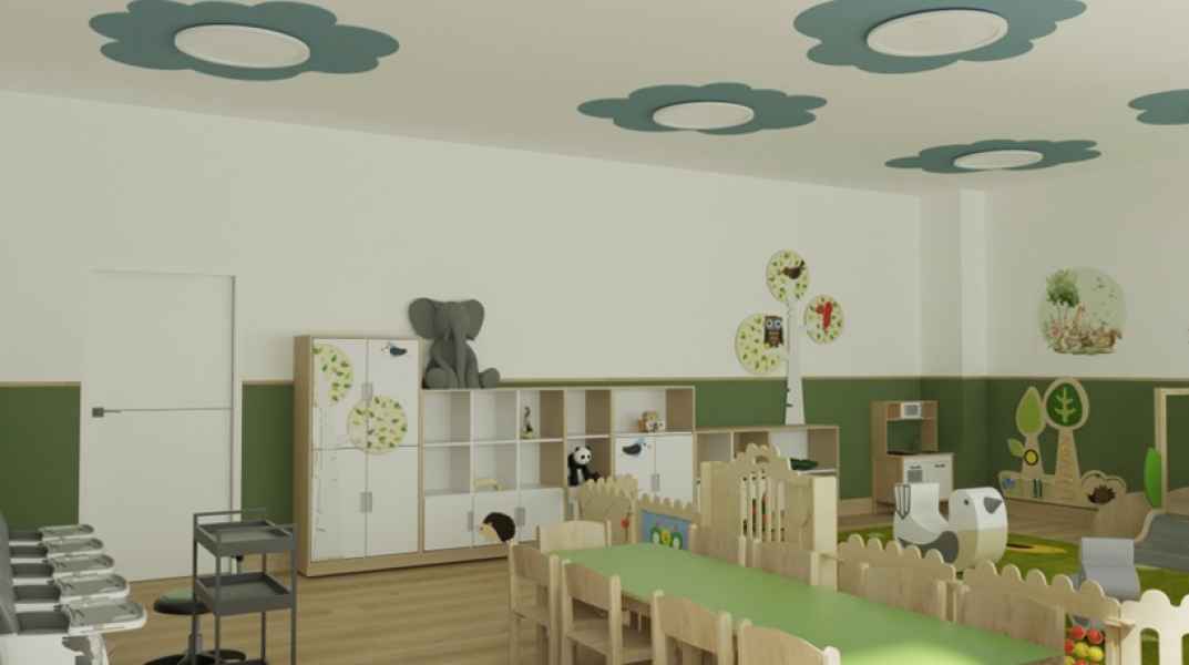 W ramach inwestycji dotychczasowa sala lekcyjna, biblioteka, pomieszczenia socjalne i gospodarcze oraz łazienki zostaną przekształcone w przestrzeń dostosowaną do potrzeb najmłodszych dzieci. Powstaną sala zabaw i sypialnia, kuchnia mleczna, przebieralnia, łazienka dla dzieci, łazienka dla personelu, pomieszczenie socjalne, biuro dyrektora placówki, magazyn oraz wózkownia. Konieczne będzie wykonanie nowych ścian działowych, zamurowanie części otworów oraz przygotowanie nowych nadproży.