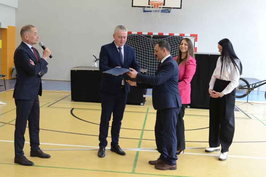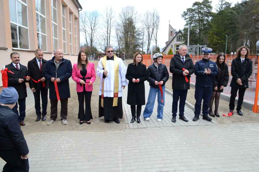 Zwieńczeniem uroczystości było symboliczne przecięcie wstęgi oraz pierwszy przejazd uczniów po miasteczku komunikacyjnym. Duże zainteresowanie wzbudził także pokaz akrobacji rowerowych w wykonaniu Piotra Bielaka.