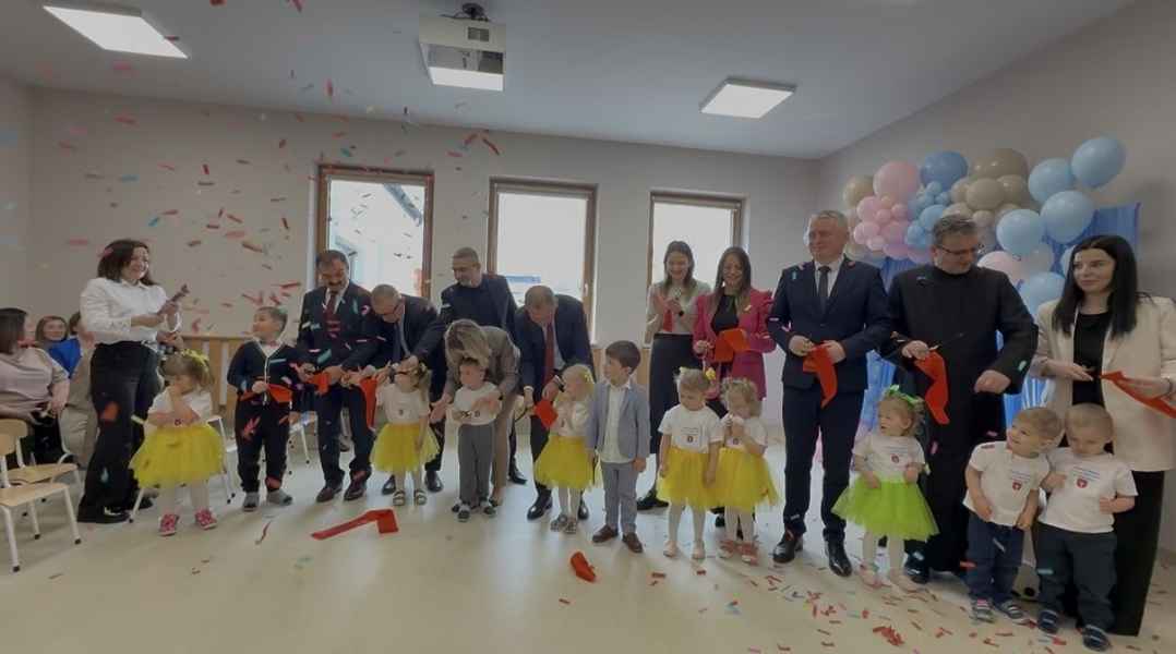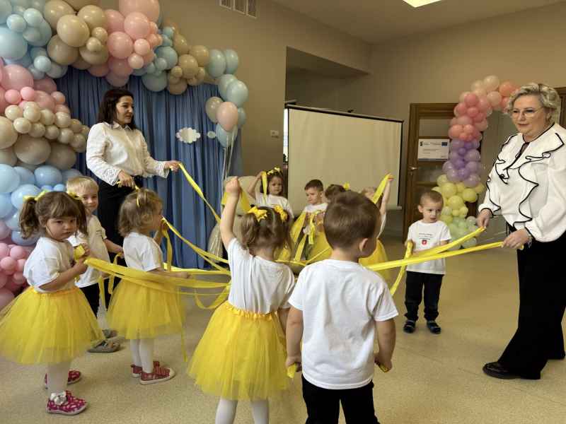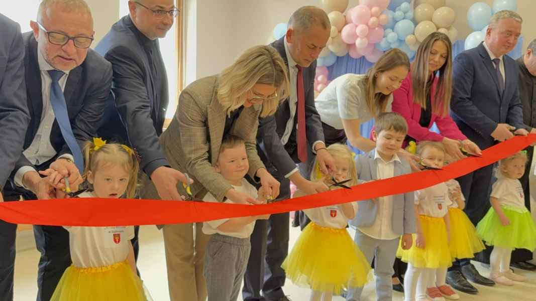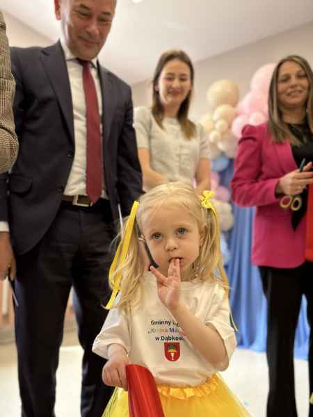 Pierwsza część wydarzenia miała miejsce w Dąbkowie, gdzie uroczyście oddano do użytku nową część Gminnego Żłobka „Kraina Malucha”. Placówka od ponad dekady pełni ważną rolę w opiece nad najmłodszymi mieszkańcami, a dzięki realizacji programu Aktywny Maluch 2024-2030 została rozbudowana i dostosowana do rosnących potrzeb rodzin. Nowa przestrzeń została przygotowana z myślą o bezpieczeństwie i komforcie dzieci.