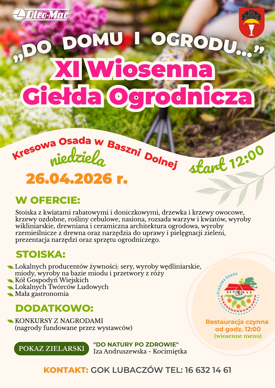 W niedzielę 26 kwietnia w Kresowej Osadzie w Baszni Dolnej odbędzie się XI Wiosenna Giełda Ogrodnicza. To wydarzenie, które co roku przyciąga miłośników ogrodnictwa oraz osoby poszukujące roślin, sadzonek i produktów regionalnych.