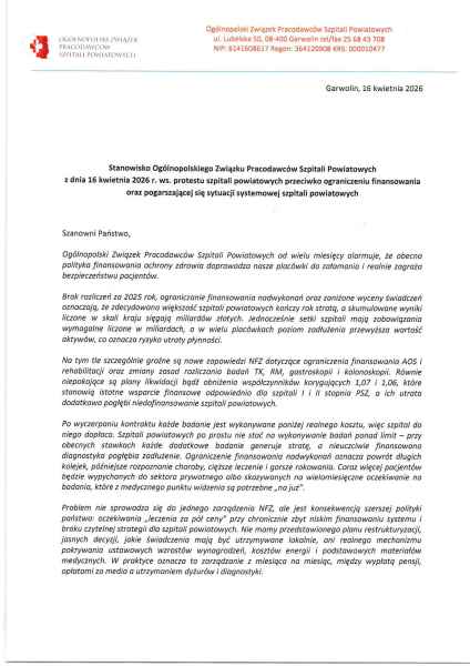Tamta manifestacja miała być wyraźnym ostrzeżeniem i próbą wymuszenia konkretnych decyzji na poziomie rządowym. Organizatorzy alarmowali, że sytuacja finansowa szpitali powiatowych jest krytyczna, a brak systemowych rozwiązań może doprowadzić do ograniczania działalności oddziałów. Jak dziś podkreślają, protest w Warszawie nie przyniósł oczekiwanych efektów, dlatego podejmowane są kolejne działania.