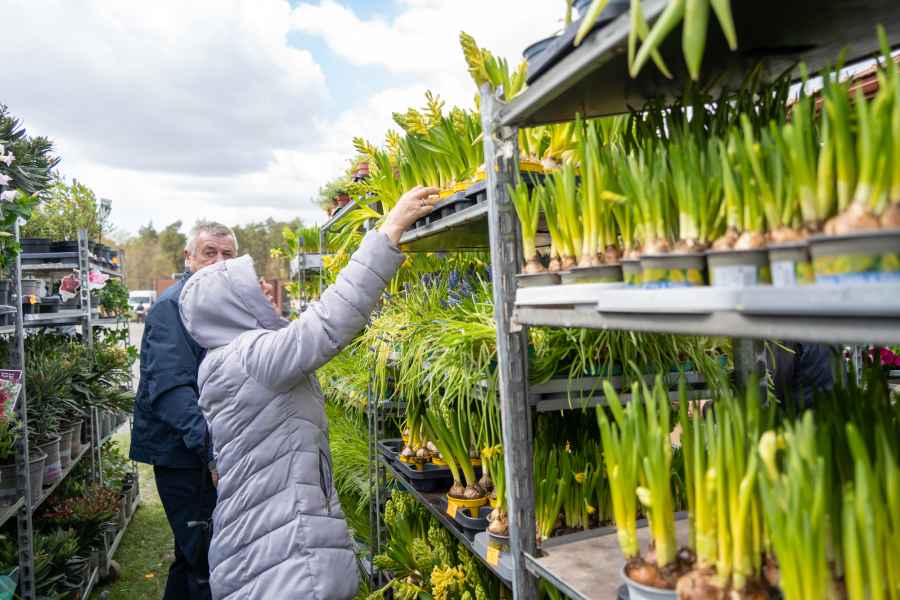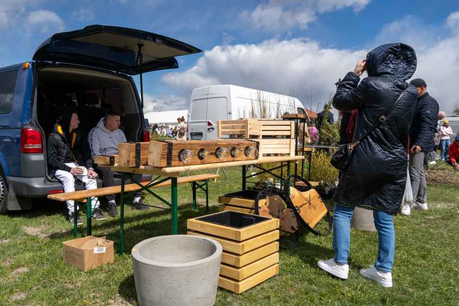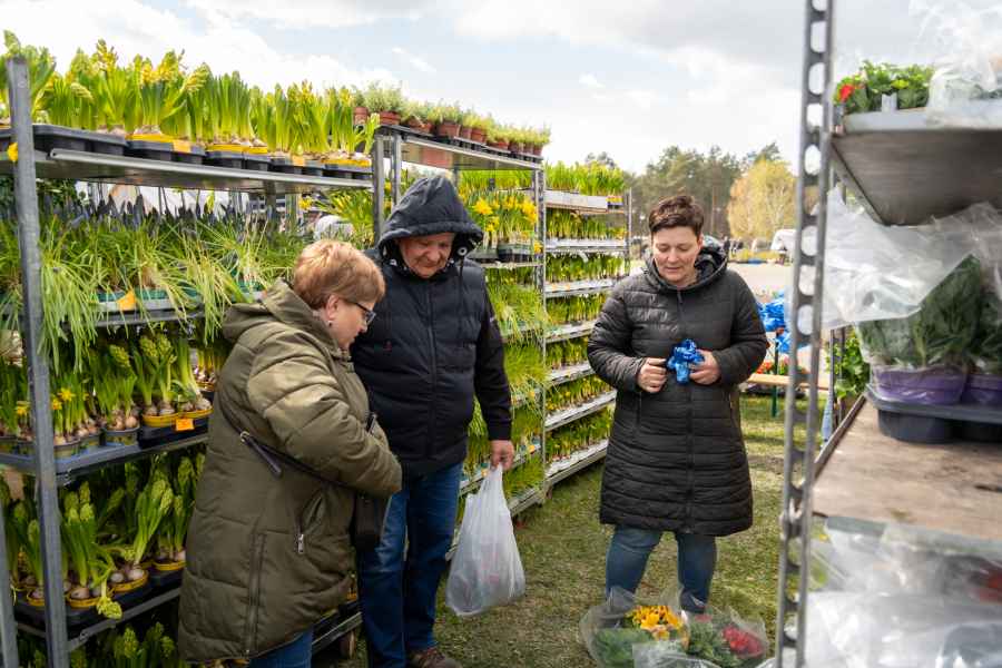Od południa odwiedzający mogli przeglądać bogatą ofertę wystawców, wśród której znalazły się m.in. kwiaty rabatowe i doniczkowe, drzewka oraz krzewy owocowe, krzewy ozdobne, rośliny cebulowe, nasiona, a także rozsady warzyw i kwiatów. Nie zabrakło również wyrobów wikliniarskich, drewnianych i ceramicznych elementów do ogrodu oraz narzędzi pomocnych w pielęgnacji zieleni.