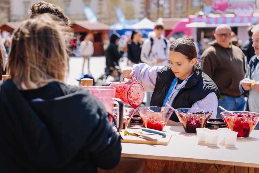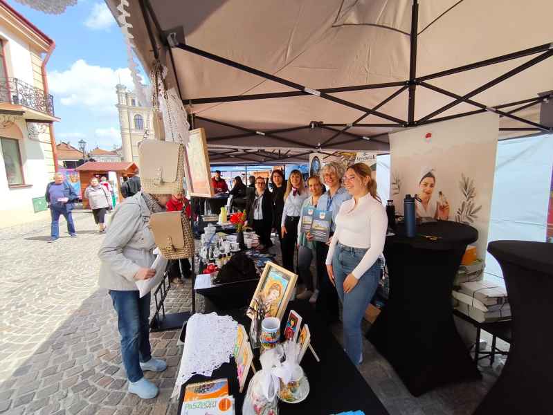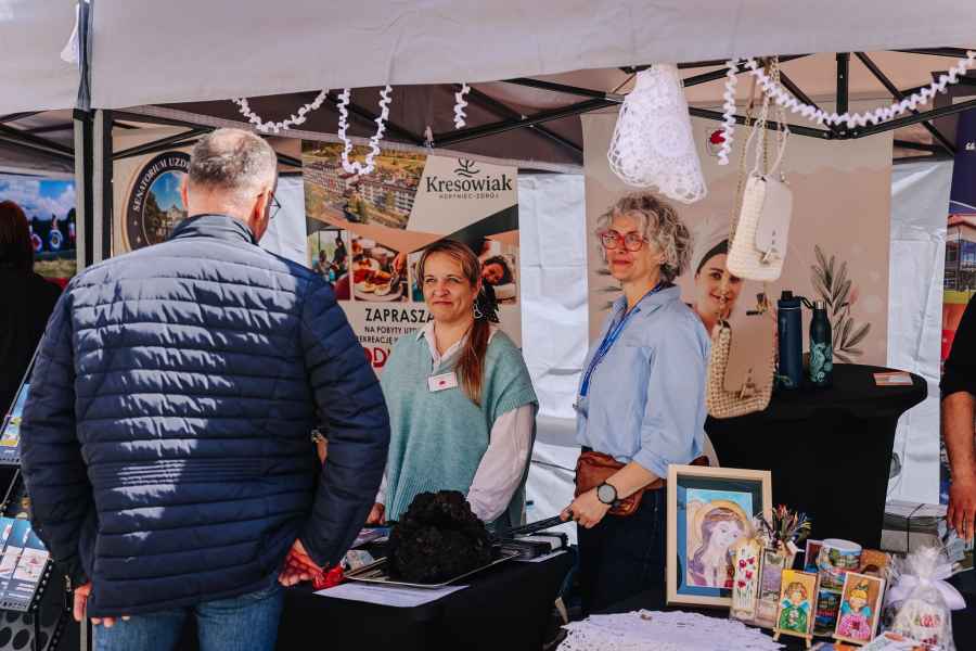 Stoisko przyciągało nie tylko materiałami promocyjnymi, ale też warsztatami przy kole garncarskim, pokazami tworzenia świec z wosku pszczelego i degustacją proziaków. Całość dopełniał występ Zespołu Pieśni i Tańca Kresy, który promował lokalną kulturę zarówno przy stoisku, jak i na scenie głównej wydarzenia.