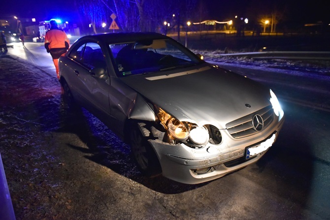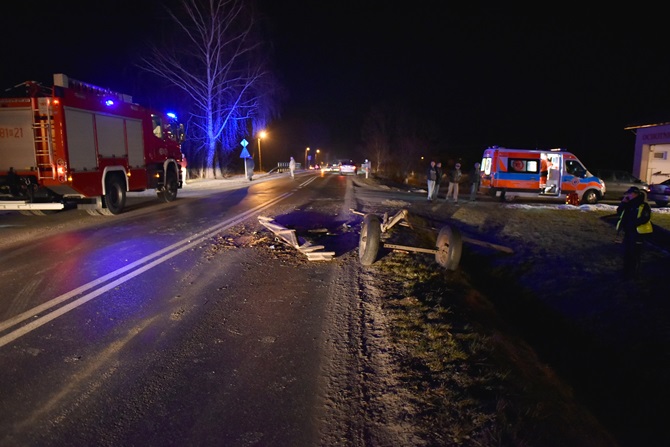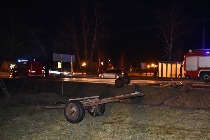 Dzisiaj około godziny 19:00 niedaleko budynku Ochotniczej Straży Pożarnej w Baszni Dolnej doszło do zderzenia osobowego Mercedesa z furmanką. Siła uderzenia była tak duża, że wóz rozpadł się na kawałki.