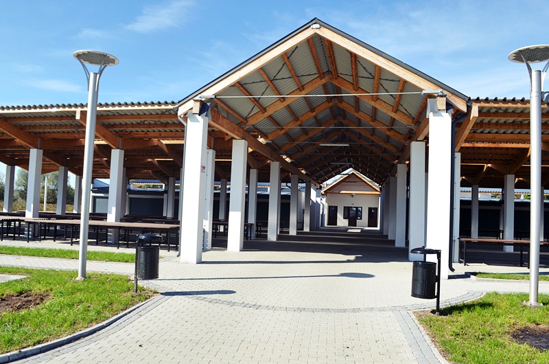 Powierzchnia targowiska z placem i drogami dojazdowymi wynosi 6220m2. Na targowisku zlokalizowany jest pawilon składający się z 4 lokali handlowych i pomieszczeń sanitarnych. Przed pawilonem zlokalizowanych jest 20 boksów handlowych w formie zamkniętych kiosków. W pozostałej zadaszonej części targowiska znajdują się rzędy stołów o konstrukcji lekkiej-stalowej z blatami drewnianymi.