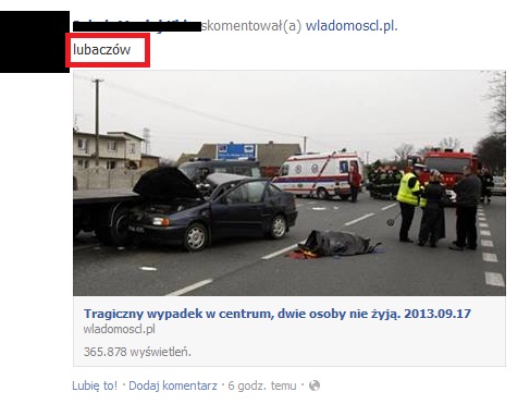 Często ostatnio widzimy na tablicach znajomych na FACEBOOKu informacje o wypadku np. w Lubaczowie z odnośnikiem do filmu lub zdjęć z miejsca zdarzenia. Jest to nowy sposób oszustów na zbieranie waszych danych osobowych.