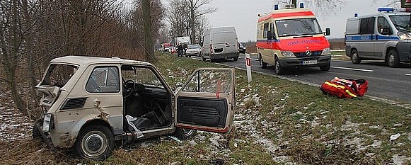 Dzisiaj po godz. 11 dyżurny Komendy Powiatowej Policji w Lubaczowie otrzymał telefoniczne zgłoszenie o wypadku drogowym, który miał miejsce na trasie Oleszyce-Lubaczów. Z policyjnych ustaleń wynika, że obydwa pojazdy biorące udział w zdarzeniu jechały w stronę Lubaczowa. W skręcającego w lewo fiata 126p uderzył jadący za nim dostawczy renault master. Siła uderzenia była na tyle duża, że "maluch" został zepchnięty z drogi. Kierowca i pasażer malucha trafili do szpitala. Kierujący pojazdami byli trzeźwi.