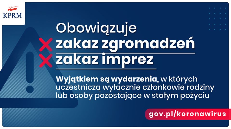 Od 25 marca do 11 kwietnia będzie obowiązywał zakaz spotkań więcej niż 2 osób. Wyjątkiem są wydarzenia, w których uczestniczą wyłącznie członkowie rodziny. Kara za nieuzasadnione gromadzenie się może skutkować mandatem w wysokości nawet 5 tys. zł