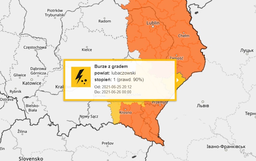 To nie koniec burz nad powiatem lubaczowskim. Do północy obowiązuje ostrzeżenie IMiGW pierwszego stopnia o możliwości wystąpienia burz z gradem na obszarze powiatu lubaczowskiego.