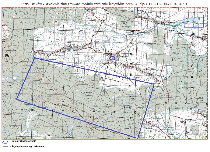 34. batalion będzie realizował szkolenie w oparciu o tereny leśne, drogi leśne oraz teren Szkoły Podstawowej, a drogi główne zostaną wykorzystane do przemieszczenia się pododdziałów.