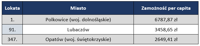 Miasta powiatowe i ich zamożność w rankingu krajowym
