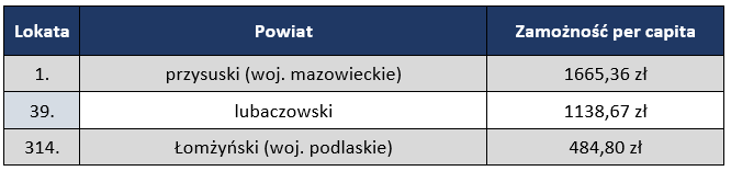 Miejsce powiatu lubaczowskiego w ogólnopolskim rankingu