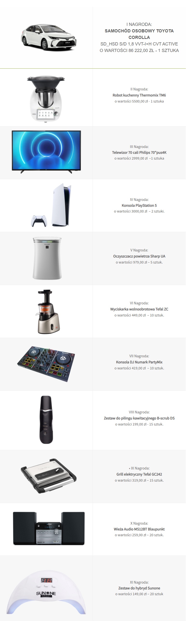 Lista nagród, którą łączna wartość wynosi 130 226 zł brutto: