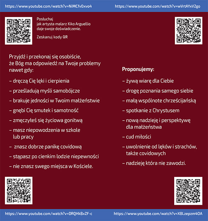 Do uczestnictwa w spotkaniach organizatorzy w szczególności zapraszają osoby, których dręczą lęki i cierpienia lub prześladują myśli samobójcze. Dołączenie do małej wspólnoty wiary kierowane jest też do osób, które mają problemy w małżeństwie, czy niepowodzenia w szkole i pracy. Warto też się wybrać jeżeli nie mamy pewności co do swojej wiary. Uczestnicy będą mogli liczyć na pomoc i wsparcie.