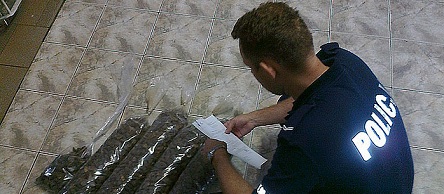 W trakcie kontroli kierowca zachowywał się bardzo nerwowo, wobec czego policjanci postanowili skrupulatnie przeglądnąć zawartość jego bagażu. W bagażniku funkcjonariusze natrafili na cztery foliowe worki z nieoszlifowanym bursztynem o łącznej masie około 21 kilogramów i wartości około 40 tysięcy złotych.