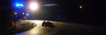 Kierowca osobowego opla wykonując manewr wyprzedzania nie zauważył pieszego idącego z naprzeciwka i potrącił go. Obrażenia, jakich doznał mężczyzna były na tyle poważne, że pomimo natychmiastowej akcji ratunkowej pieszy zmarł. Kierowca opla był trzeźwy.