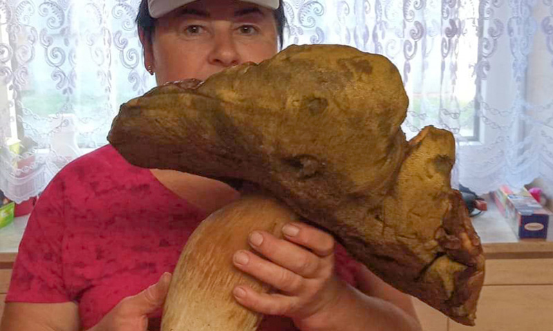 Rekordowo wielki grzyb został znaleziony przez panią Bożenę Pachołek. Prawdziwek, który rósł w lesie niedaleko Dachnowa ważył 2,8 kg.