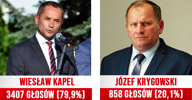 Kandydat Prawa i Sprawiedliwości Wiesław Kapel pozostanie wójtem na kolejne 5-lat. Obecny włodarz gminy zdecydowanie wygrał z Józefem Krygowskim.