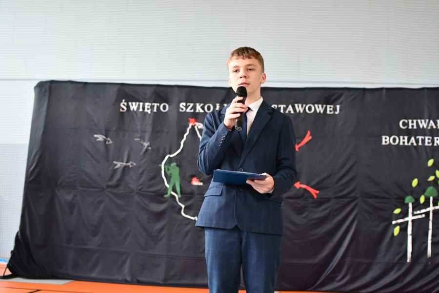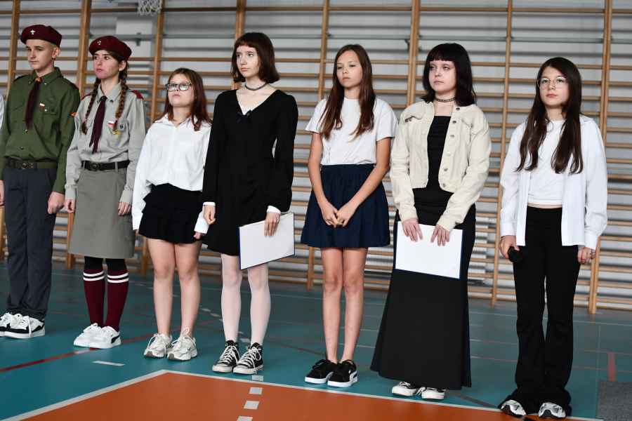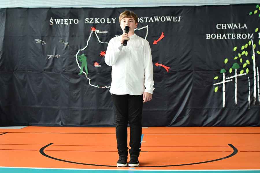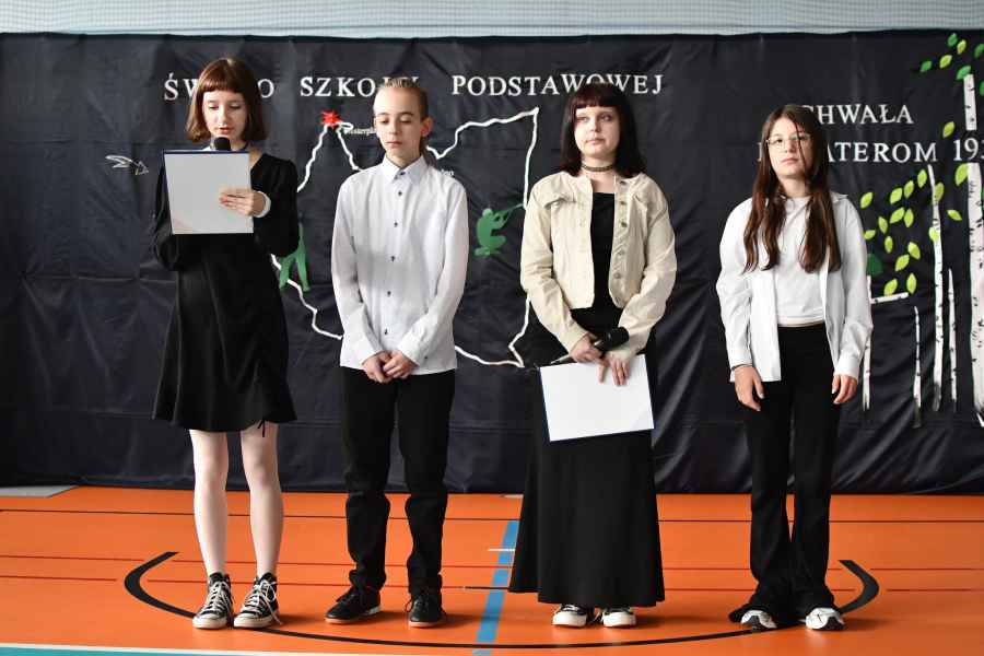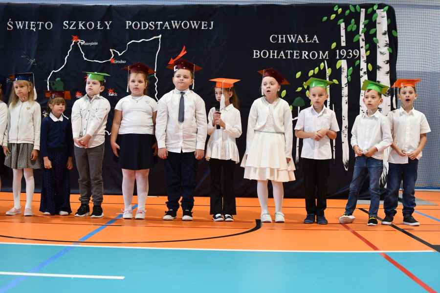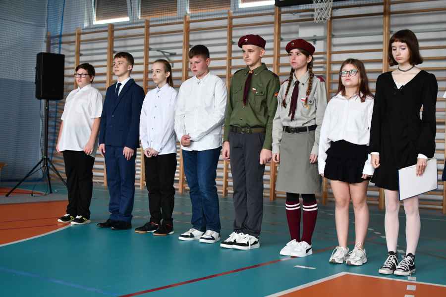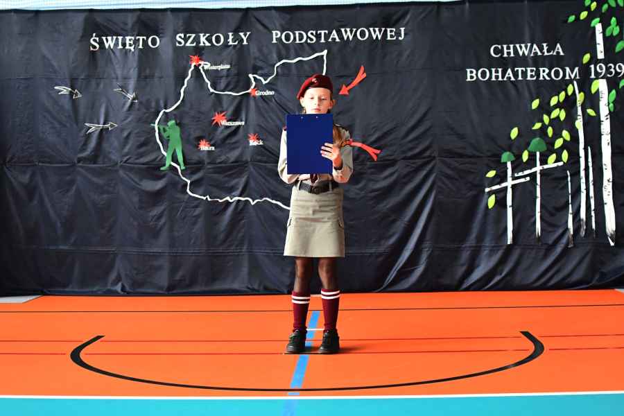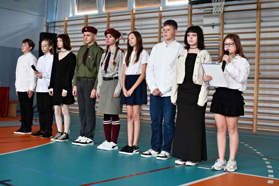 Następnie w sali gimnastycznej odbyła się część artystyczna, przygotowana przez uczniów klasy VI pod kierunkiem Marty Dobrowolskiej. Program poświęcony wydarzeniom sprzed 86 lat przypomniał zarówno trudne chwile wojny, jak i siłę ducha ludzi, którzy bronili Ojczyzny.