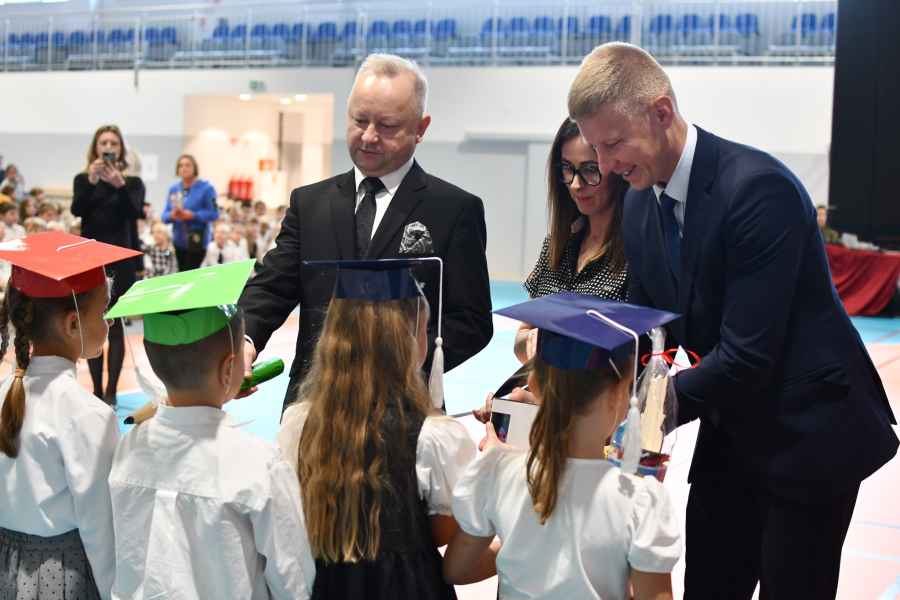 Najbardziej wyczekiwanym punktem dnia było pasowanie uczniów klas pierwszych. Pierwszoklasiści, składając uroczyste ślubowanie, zostali oficjalnie przyjęci do grona społeczności szkolnej. Ten symboliczny moment, pełen emocji i radości, na długo zapadnie w pamięci dzieci i ich rodzin.