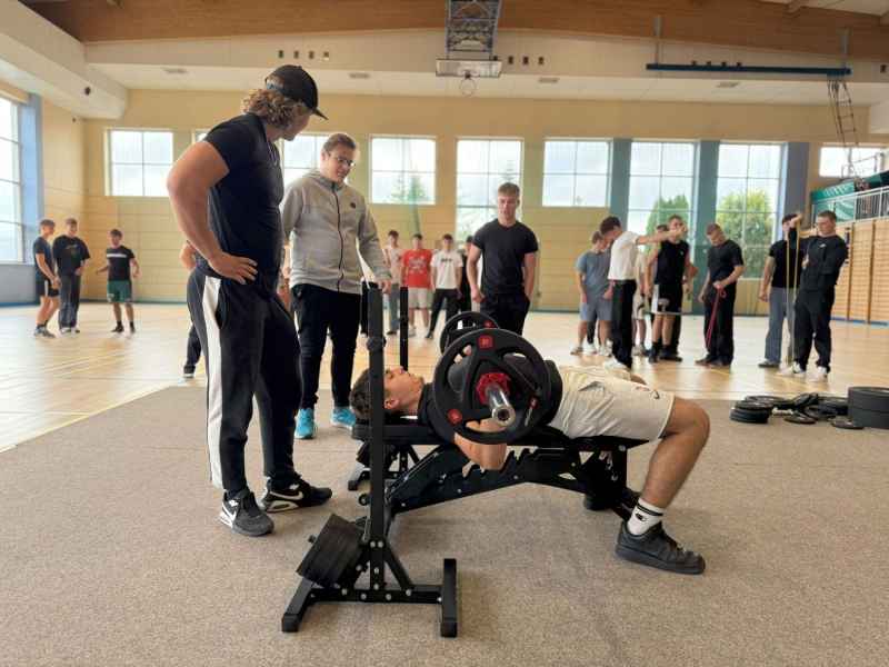 Tak narodziła się inicjatywa zawodów w wyciskaniu sztangi na ławce, które odbyły się w hali sportowej placówki. Do rywalizacji stanęło ponad 40 uczniów, a emocje trwały przez dwie godziny lekcyjne. Zakres podnoszonych ciężarów był bardzo szeroki – od 40 kilogramów u najmłodszych uczestników, aż po wyniki sięgające 170 kilogramów.