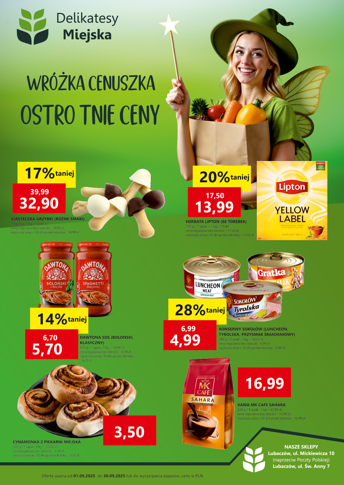 Pod hasłem „Wróżka Cenuszka ostro tnie ceny” znajdziemy kolejne interesujące promocje. W Delikatesach Miejska taniej kupimy m.in.: