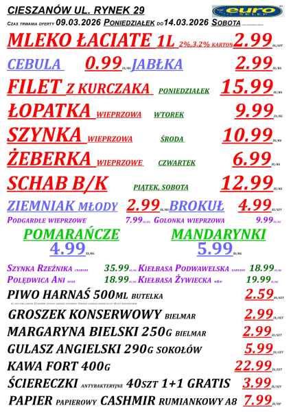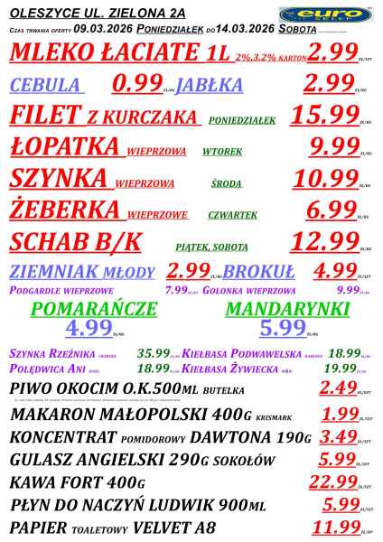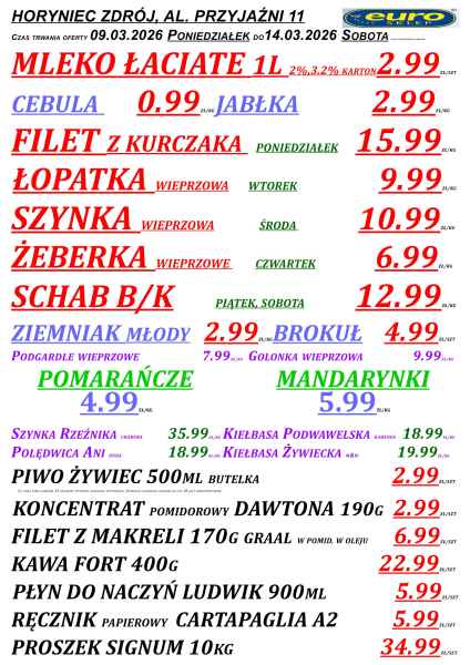Promocje obowiązują w sklepach Euro w Cieszanowie, Horyńcu-Zdroju, Lubaczowie, Oleszycach oraz Starym Dzikowie. Oferta jest ograniczona czasowo i – jak zaznaczono w gazetce – obowiązuje do 14 marca lub do wyczerpania zapasów.