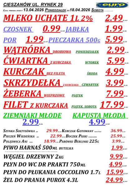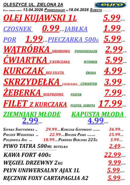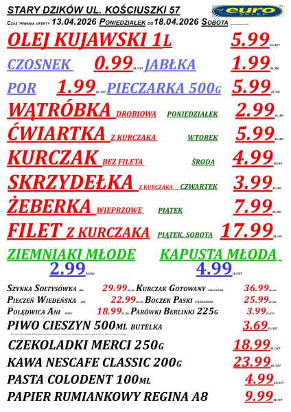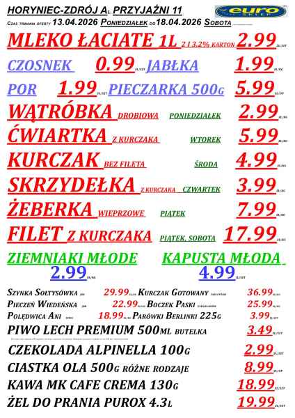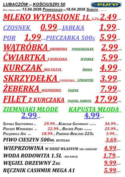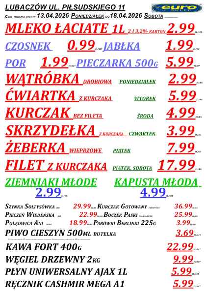 Promocje dostępne są w sklepach Euro w powiecie lubaczowskim, m.in. w Lubaczowie, Cieszanowie, Oleszycach, Starym Dzikowie i Horyńcu-Zdroju. Jak zwykle, oferta obowiązuje do wyczerpania zapasów.